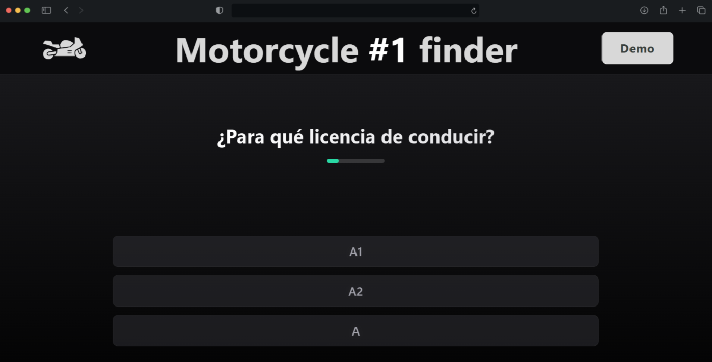 A web app built with React that helps users find the perfect motorcycle based on their preferences and characteristics.